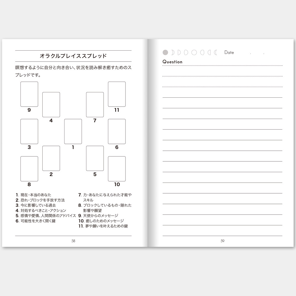 リーディングしたい内容に合わせてスプレッドを選んでも良し、目次を見てピンと来たものから取り組んでも、最初から取り組んでもOK!自由にお使いいただけます。
